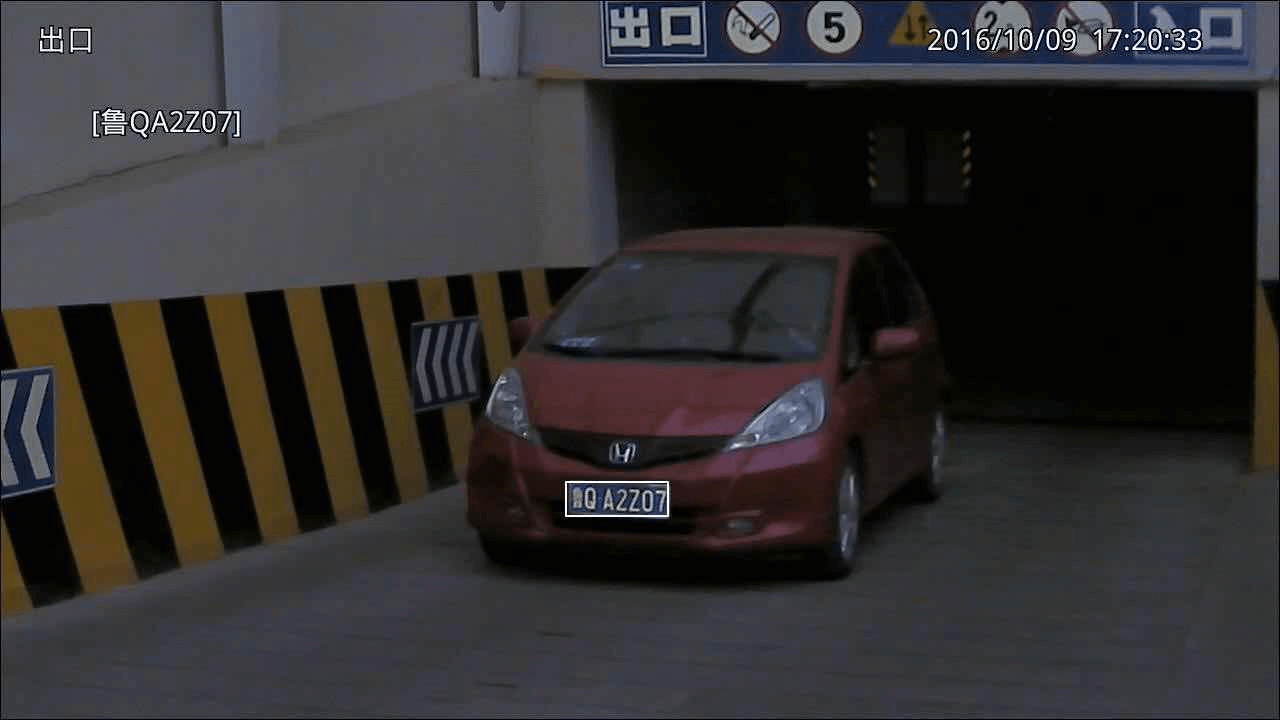 同時調(diào)節(jié)攝像機萬向節(jié),使車牌盡量保持水平,避免出現(xiàn)車牌左高右低或者左低右高的情況, 佳的效果可以參考下圖: